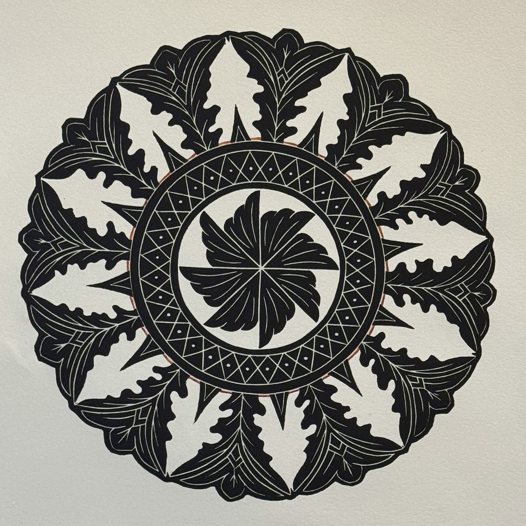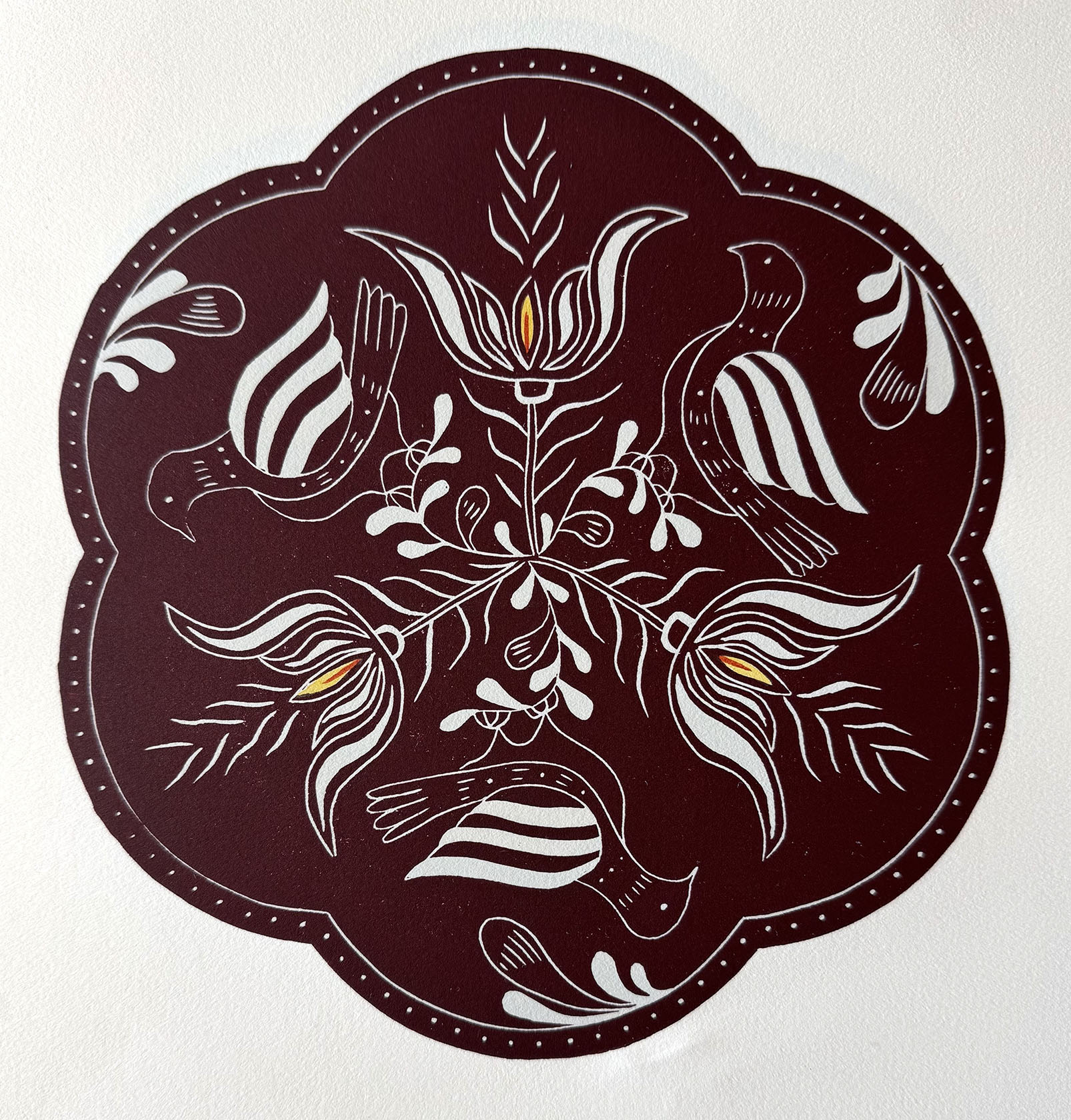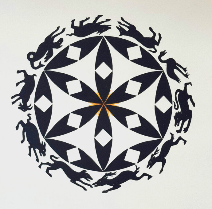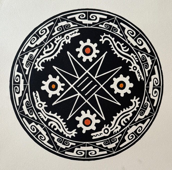 Linocut, Oct. 2024, 7 7/8″ diameter, no edition, created just for Circularity book